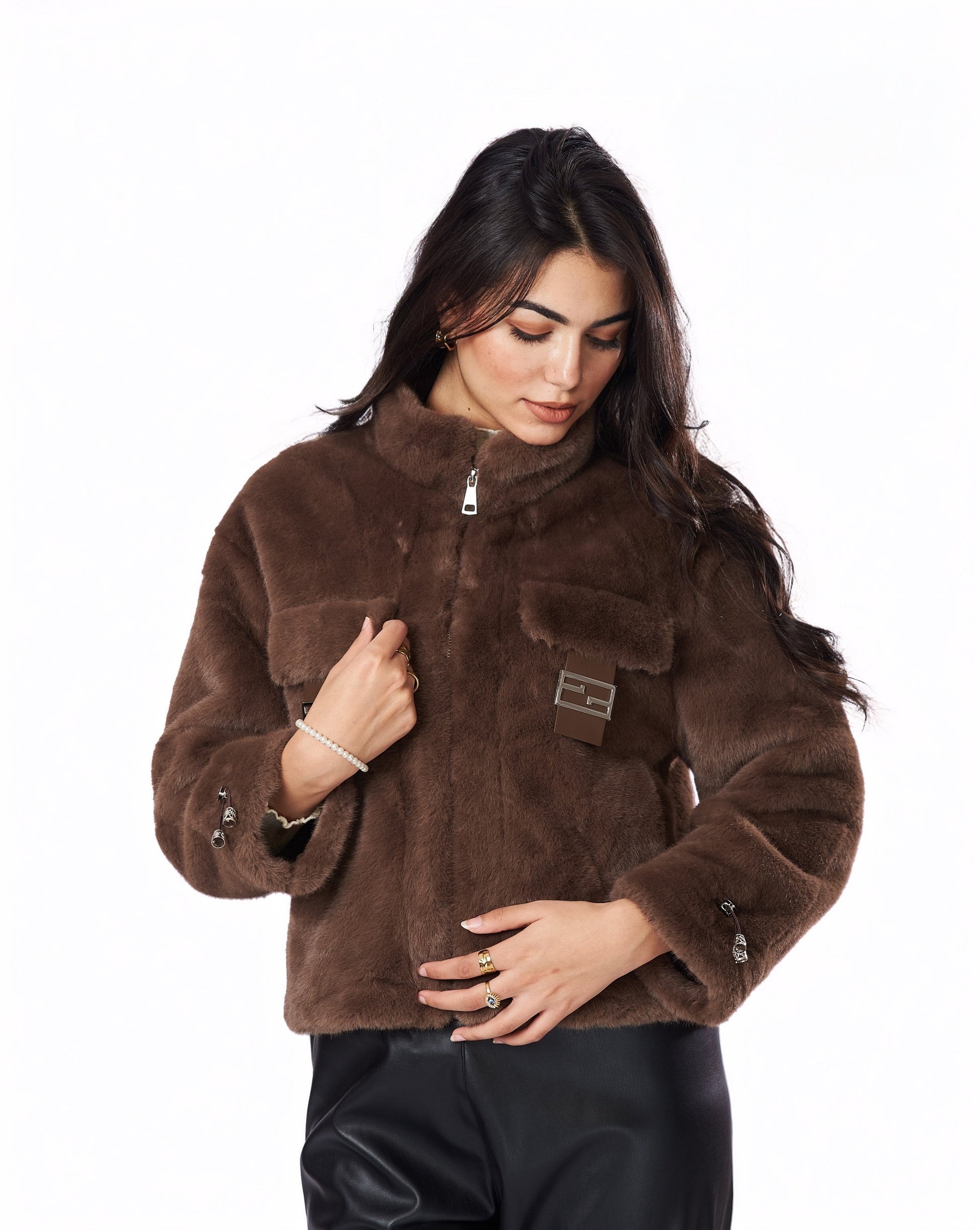 لونها البني الموكّا الغني وملمسها الفخم بيضيفوا عمق ورُقي لأي إطلالة.