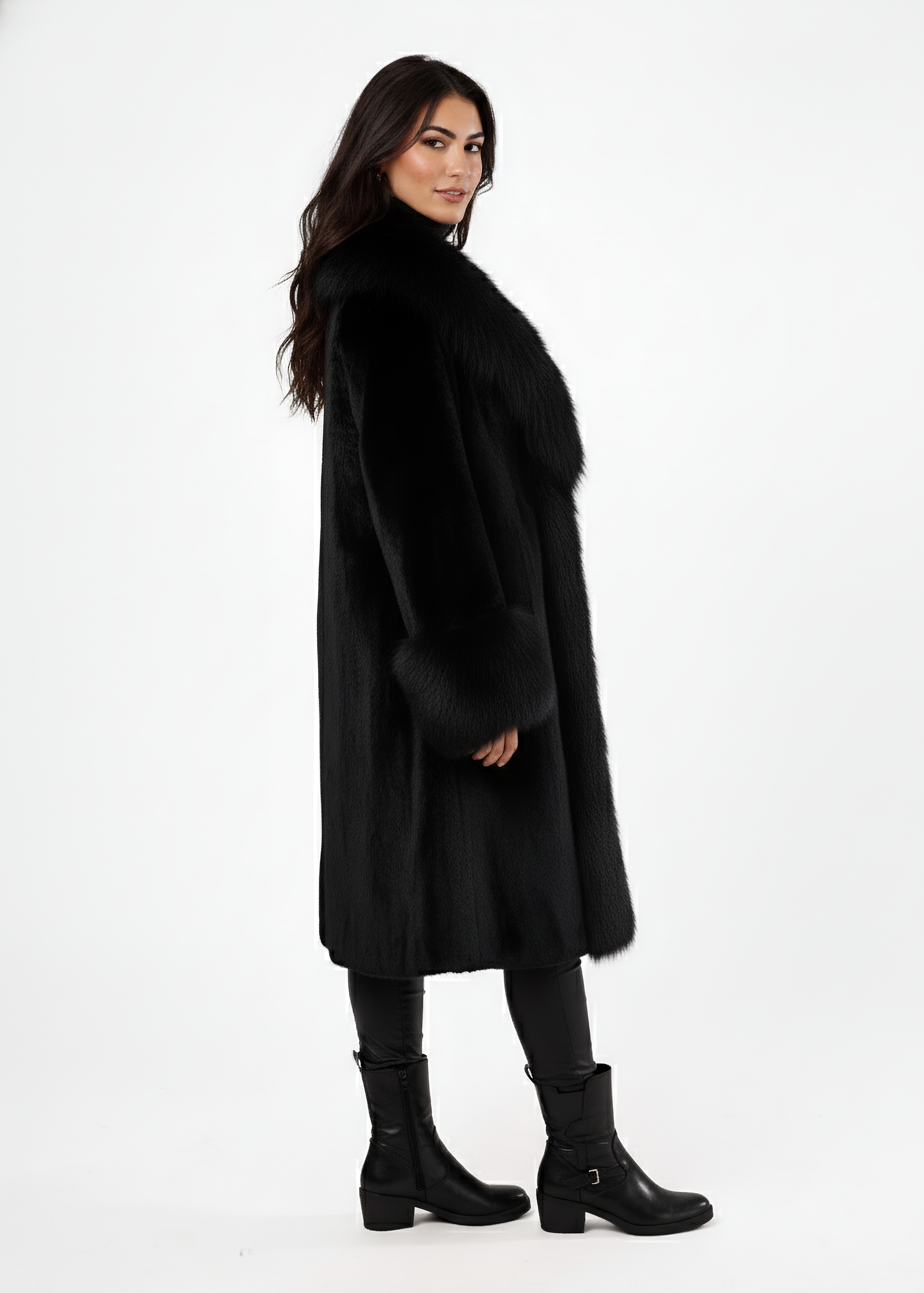 لونها الأسود العميق وتفاصيل الفرو بيعكسوا دفء فخم وأناقة خالدة.
