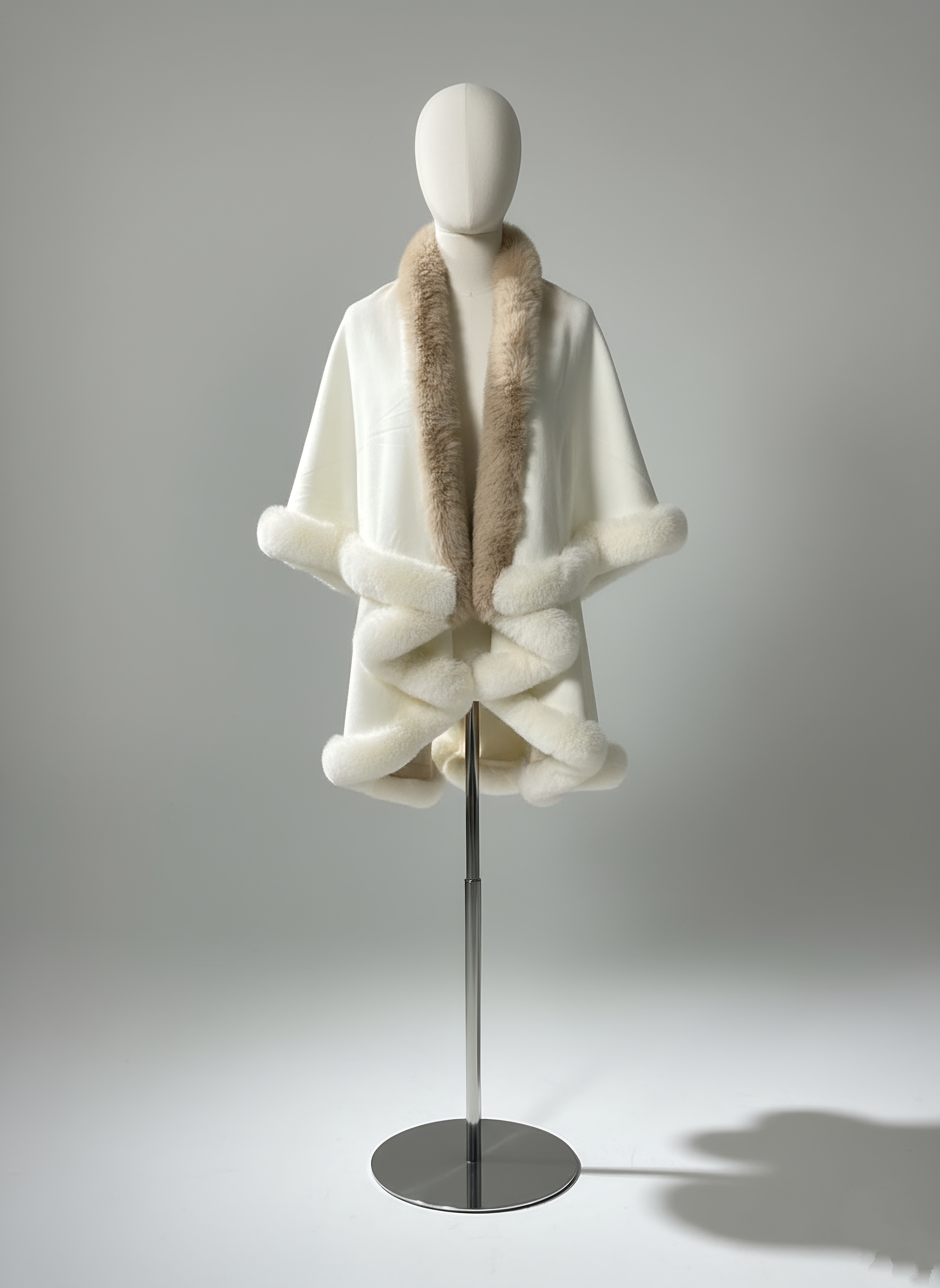 بلونه الأبيض الكريمي وتفاصيل الفرو البيج الفاتح، بيعبّر عن أناقة هادئة وفخامة عصرية.